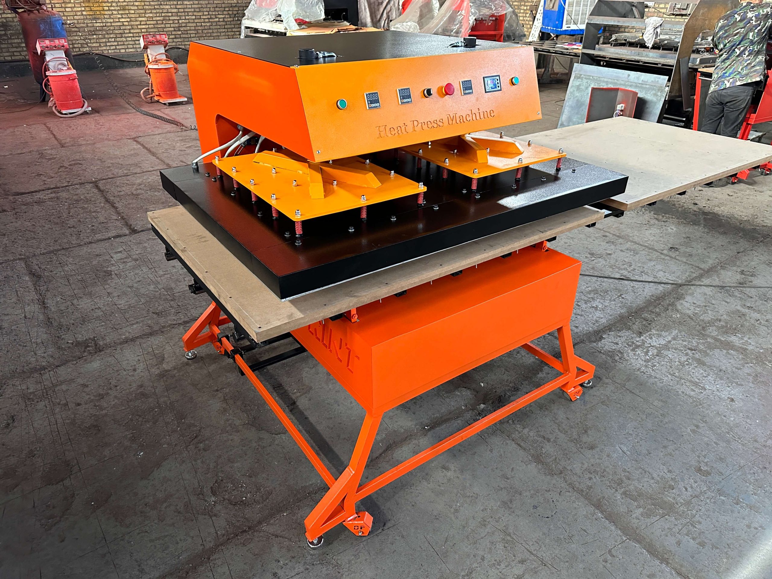 پرس های چاپ شال و روسری بصورت پنوماتیک و هیدرولیکی قابل تولید و سفارش هستند و در این ابعاد پرس حرارتی برقی منطقی نیست و حتما باید سیستم پرس بادی یا روغنی باشد . بر اساس سایز پرس تعداد جک های پنوماتیک یا هیدرولیکی قابل تعیین هستند که پرس دو چهار یا شش جک باشد تا فشار پرس در تمام سطح یکنواخت منتقل شود .